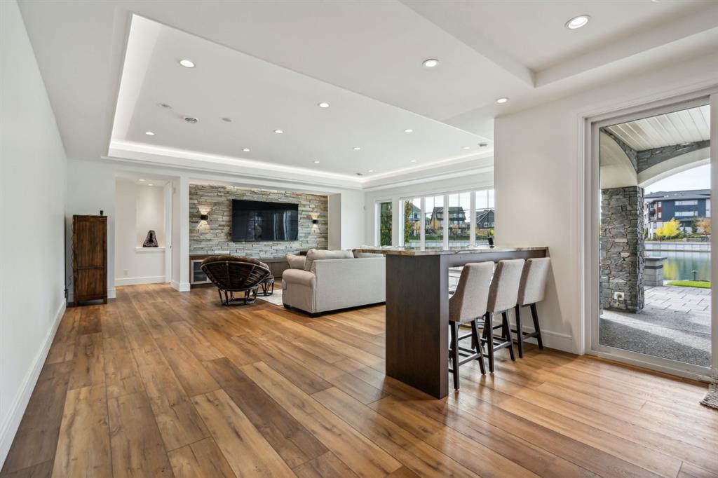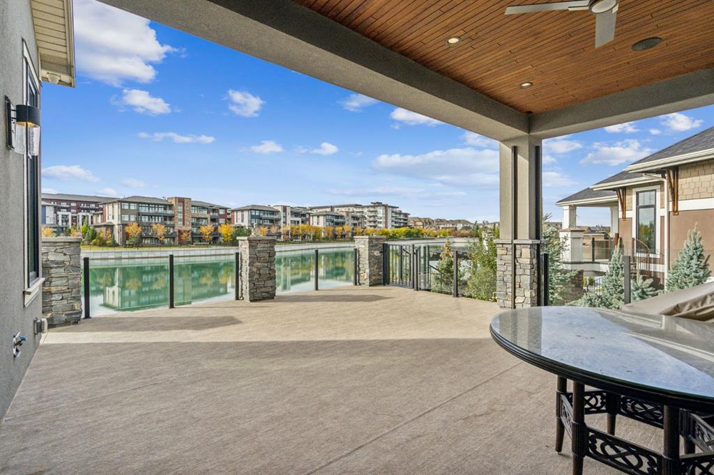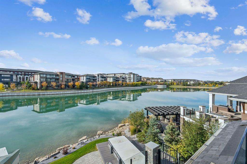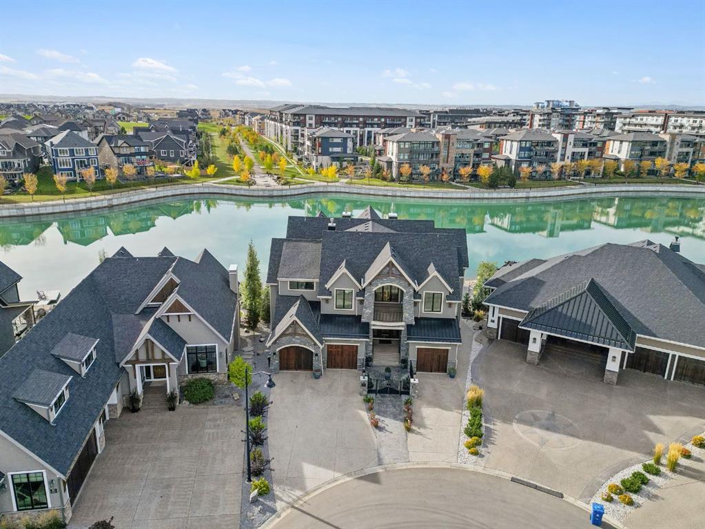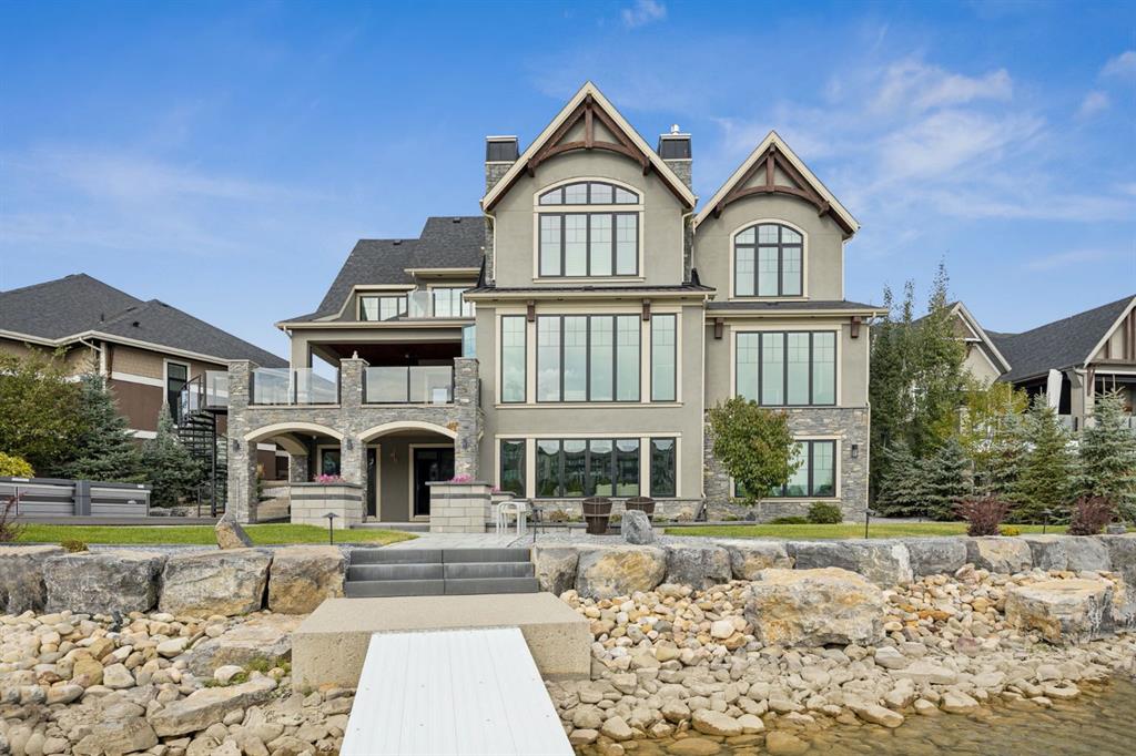 WELCOME to the CROWN JEWEL of Mahogany Island! This RARE lakefront ESTATE by Calbridge Homes is ONE of only 22 EXCLUSIVE residences in this gated enclave. Of these, only 10 homes boast a south-facing backyard, making this property ONE of just TEN in the entire city with this coveted feature. Privacy, sophistication, and UNMATCHED craftsmanship define this 6,650 sq ft MASTERPIECE. - Arrive in style through wrought iron gates and an illuminated concrete courtyard. Step inside to an OPEN, BRIGHT, and TIMELESSLY ELEGANT home where MODERN LUXURY meets CLASSIC CHARM. SOARING floor-to-ceiling windows frame BREATHTAKING panoramic lake views, while natural light floods the airy interiors. - The heart of the home? A DREAM CHEF'S KITCHEN, featuring a 16-ft exotic granite waterfall island, top-tier Miele appliances, a full-size fridge/freezer, built-in oven, steam oven, coffee maker, and a 6-burner gas stove with induction burner. A butler’s pantry, second fridge, and walkthrough pantry ensure effortless entertaining. -The MAIN FLOOR is a SHOWPIECE, with intricate cornice moldings, wood beams, white oak wide plank floors, and an 84-inch horizontal fireplace. Folding patio doors open to a MASSIVE covered deck, -- indoor-outdoor living at its finest! - UPSTAIRS, the PRIMARY SUITE is a TRUE SANCTUARY, boasting 17-ft ceilings, a SPA-INSPIRED ENSUITE with a 9-ft glass shower, heated floors, a fireplace, and a walk-in closet with a quartz island. Two additional BEDROOMS, each with ensuites and walk-in closets, share a COVERED PATIO overlooking the canal. The BONUS ROOM, complete with a WET BAR and VIEW DECK, is an entertainer’s dream. - The WALKOUT LOWER LEVEL is an ENTERTAINMENT OASIS, featuring a MEDIA ROOM with a 120” screen, a WET BAR with designer backsplash, a BUILT-IN ICE CREAM MAKER, games room, fitness area, SAUNA, family room, and a fourth bedroom. - OUTDOOR LIVING is unparalleled, with a SOUTH-FACING backyard featuring a BRAND-NEW BBQ KITCHEN, multiple seating areas, fire tables, a SWIM SPA, and a PRIVATE DOCK. - Practical luxury includes a HEATED TRIPLE TANDEM + SINGLE GARAGE with EV charging and new cutting-edge SMART HOME TECHNOLOGY. HEPA Filtration System with UV Light. - This is MORE than a home—it’s a LIFESTYLE. Don’t miss this ONCE-IN-A-LIFETIME opportunity to own Calgary’s MOST EXCLUSIVE lakefront living.