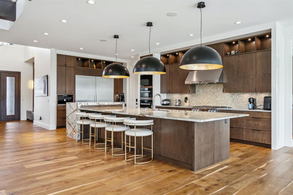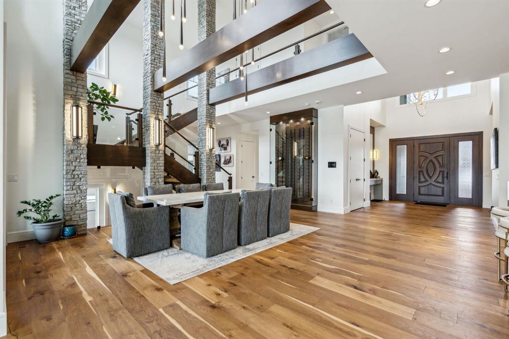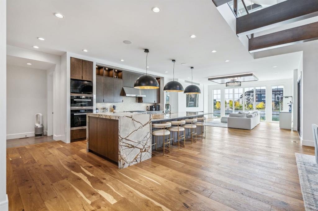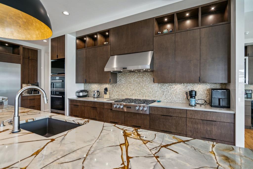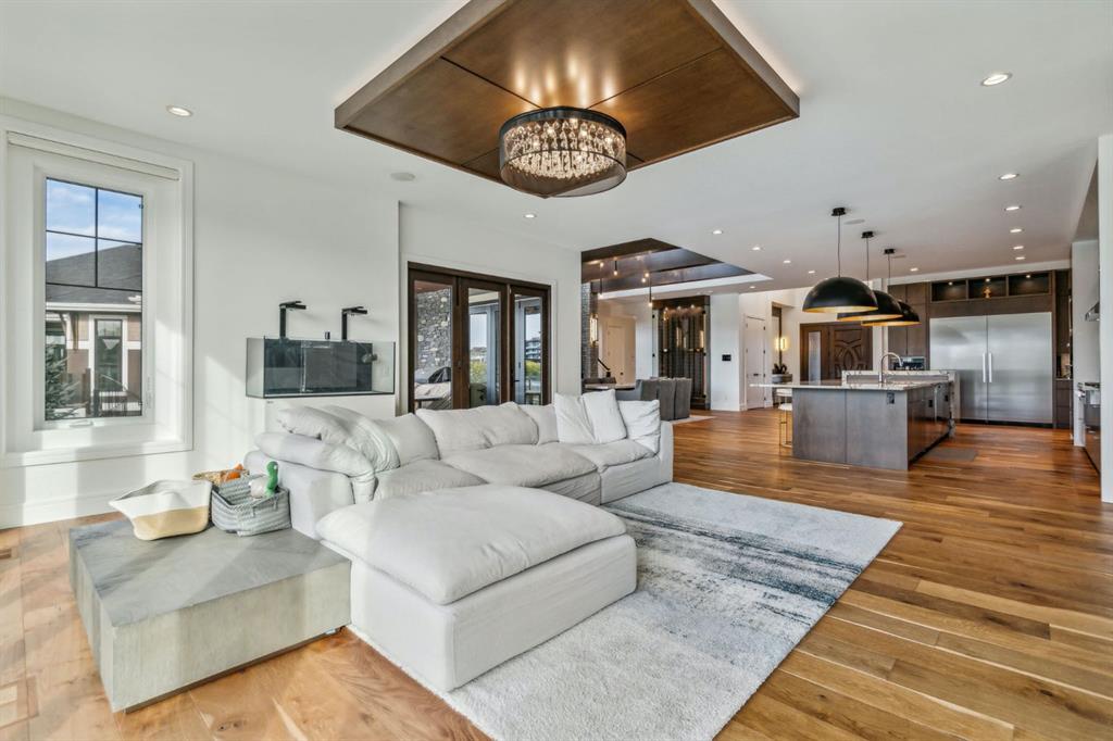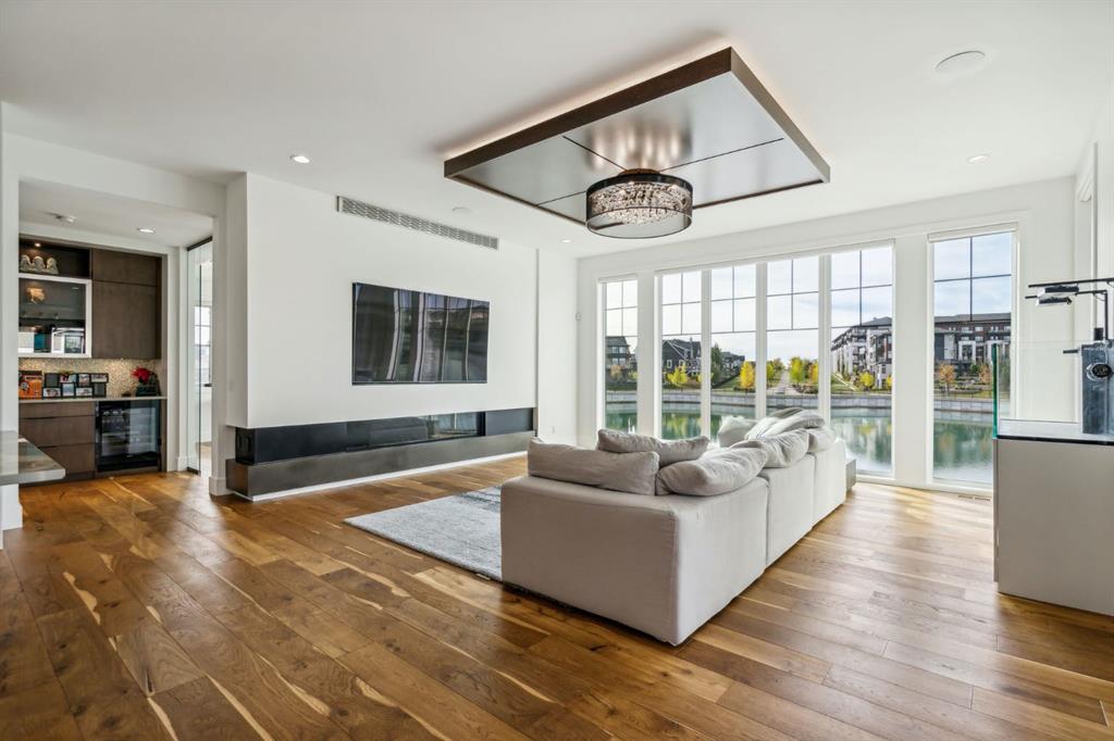 WELCOME to the CROWN JEWEL of Mahogany Island! This RARE lakefront ESTATE by Calbridge Homes is ONE of only 22 EXCLUSIVE residences in this gated enclave. Of these, only 10 homes boast a south-facing backyard, making this property ONE of just TEN in the entire city with this coveted feature. Privacy, sophistication, and UNMATCHED craftsmanship define this 6,650 sq ft MASTERPIECE. - Arrive in style through wrought iron gates and an illuminated concrete courtyard. Step inside to an OPEN, BRIGHT, and TIMELESSLY ELEGANT home where MODERN LUXURY meets CLASSIC CHARM. SOARING floor-to-ceiling windows frame BREATHTAKING panoramic lake views, while natural light floods the airy interiors. - The heart of the home? A DREAM CHEF'S KITCHEN, featuring a 16-ft exotic granite waterfall island, top-tier Miele appliances, a full-size fridge/freezer, built-in oven, steam oven, coffee maker, and a 6-burner gas stove with induction burner. A butler’s pantry, second fridge, and walkthrough pantry ensure effortless entertaining. -The MAIN FLOOR is a SHOWPIECE, with intricate cornice moldings, wood beams, white oak wide plank floors, and an 84-inch horizontal fireplace. Folding patio doors open to a MASSIVE covered deck, -- indoor-outdoor living at its finest! - UPSTAIRS, the PRIMARY SUITE is a TRUE SANCTUARY, boasting 17-ft ceilings, a SPA-INSPIRED ENSUITE with a 9-ft glass shower, heated floors, a fireplace, and a walk-in closet with a quartz island. Two additional BEDROOMS, each with ensuites and walk-in closets, share a COVERED PATIO overlooking the canal. The BONUS ROOM, complete with a WET BAR and VIEW DECK, is an entertainer’s dream. - The WALKOUT LOWER LEVEL is an ENTERTAINMENT OASIS, featuring a MEDIA ROOM with a 120” screen, a WET BAR with designer backsplash, a BUILT-IN ICE CREAM MAKER, games room, fitness area, SAUNA, family room, and a fourth bedroom. - OUTDOOR LIVING is unparalleled, with a SOUTH-FACING backyard featuring a BRAND-NEW BBQ KITCHEN, multiple seating areas, fire tables, a SWIM SPA, and a PRIVATE DOCK. - Practical luxury includes a HEATED TRIPLE TANDEM + SINGLE GARAGE with EV charging and new cutting-edge SMART HOME TECHNOLOGY. HEPA Filtration System with UV Light. - This is MORE than a home—it’s a LIFESTYLE. Don’t miss this ONCE-IN-A-LIFETIME opportunity to own Calgary’s MOST EXCLUSIVE lakefront living.