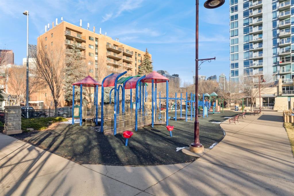 Welcome to Park 300 Palisades, an iconic concrete building perfectly positioned where urban convenience meets a postcard-worthy setting overlooking Haultain Park. This thoughtfully designed 1-bed, 1-bath suite lives larger than expected, featuring an open-concept living and dining area with space for a work-from-home setup, a functional galley kitchen, and a comfortably sized bedroom. ALL UTILITIES INCLUDED : water, electricity, heat, and more, are conveniently included in the low condo fee. The building is well-managed and impressively equipped: • Secure gated parking (assigned stall plus plentiful visitor parking) • Indoor saltwater pool, dry sauna, and newly renovated fitness centre with updated equipment • Modern laundry lounge, secure bike storage, and on-site property management. Step outside and you're 30 seconds to the park and tennis courts, 3 minutes to the CTrain, and less than 5 minutes to 17th Ave and Stephen Ave, home to Calgary’s best cafés, dining, boutiques, entertainment, and shopping. Walk or cycle to work, catch a Flames game at the future Event Centre, or simply unwind and enjoy the sparkling city skyline from your private perch. Whether you're a first-time buyer, down-sizer, or investor, this home offers turn-key Beltline living, and front-row access to every downtown destination.